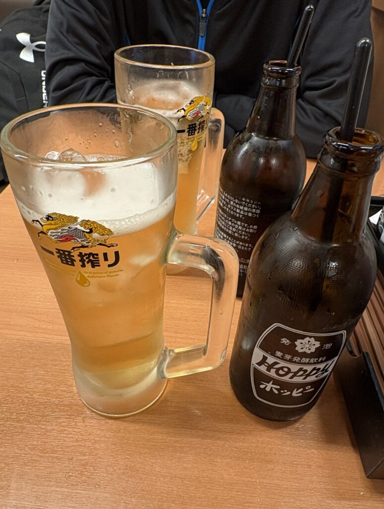 試合後は小田原の「日高屋」で反省会|ホッピーが染みる
