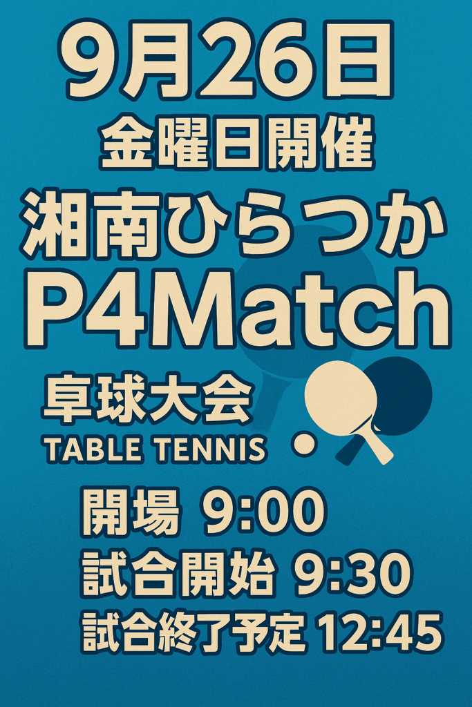 第3回湘南ひらつかP4Match P4match開催予定 X Facebook はてブ LINE コピー 2025.09.162025.10.02 平日開催!! 参加者募集です!! よろしくお願いします!!