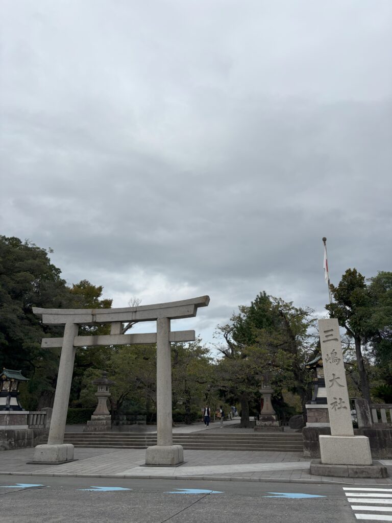 三島大社の大鳥居と社号標(参拝前の入口)